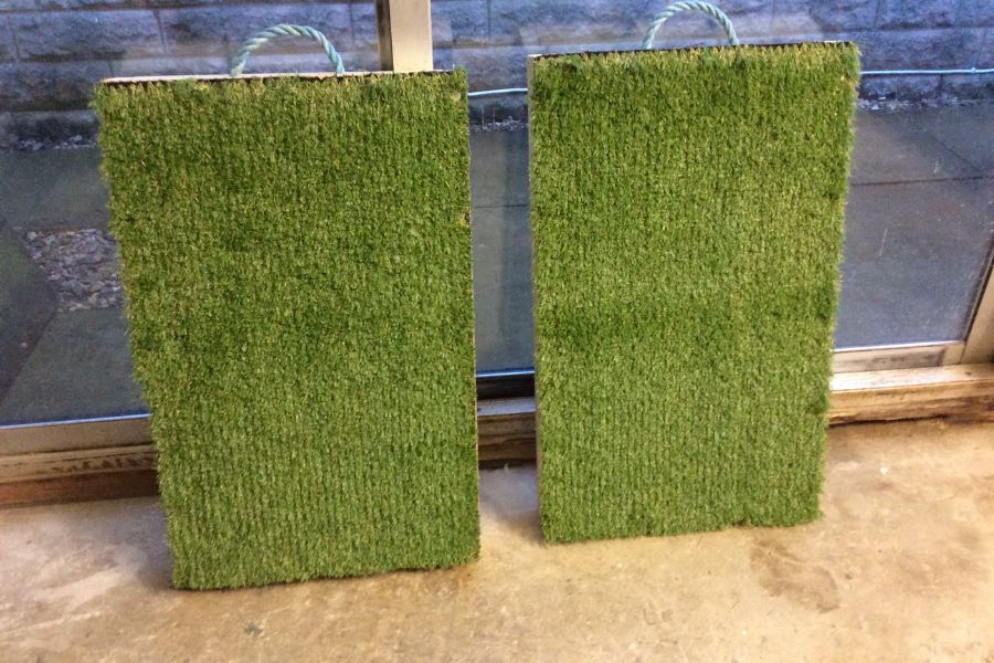 Glue or staple the astroturf securely to the top. We used a mixture of both to ensure the dogs couldn’t get hurt by the turf slipping.